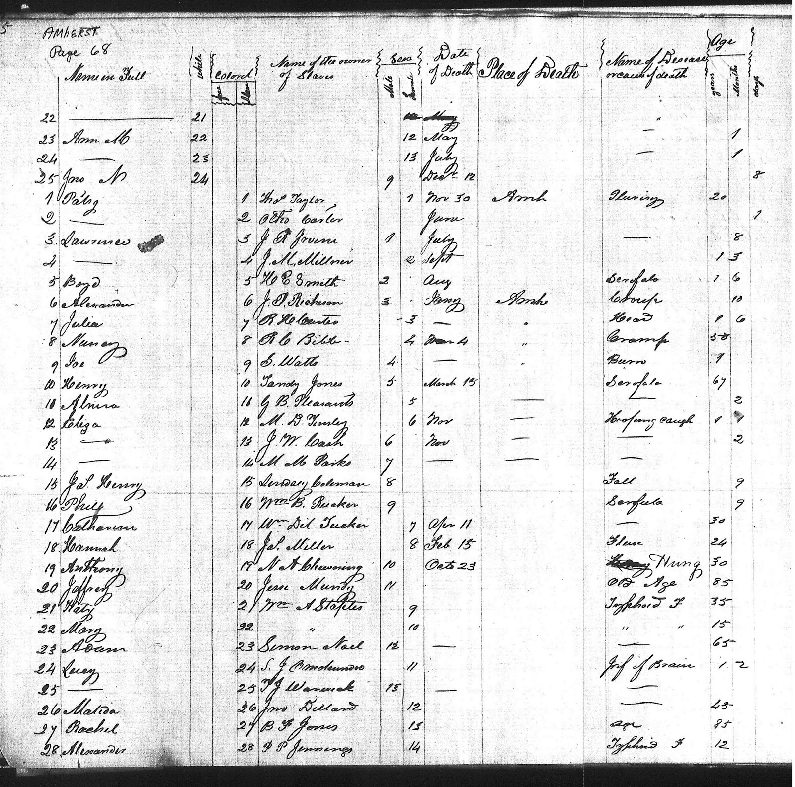 Jennings, Samuel H. (my first cousin three times removed), Private, Co. H; enlisted 15 April 1861 at Amherst courthouse; age 24, farmer; Present until discharged discharged on 12 September 1861 by order of General Beauregard, surgeon's certificate, listed disease was smallpox. Pension 1900.